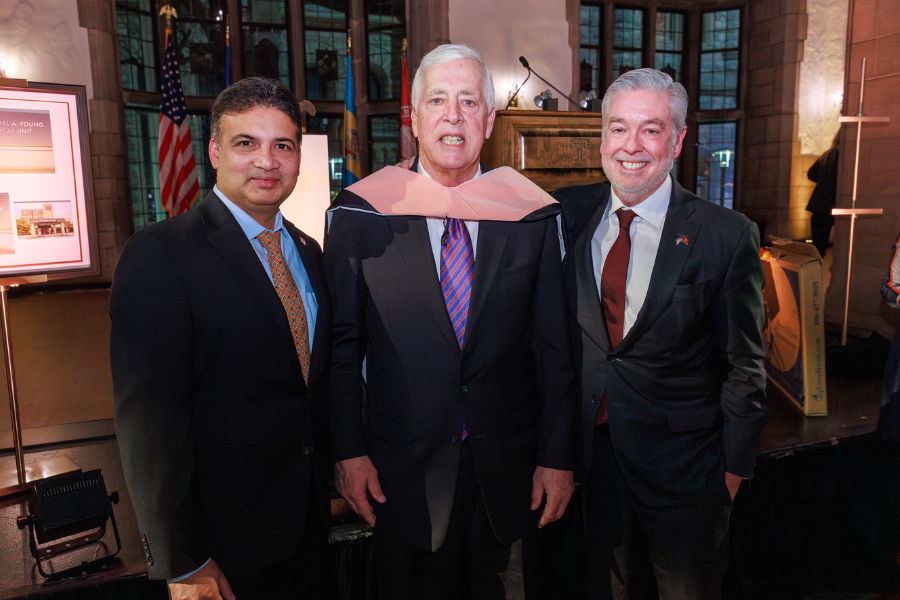 (From left) Rastogi, Young, and President Fry.